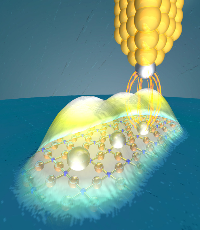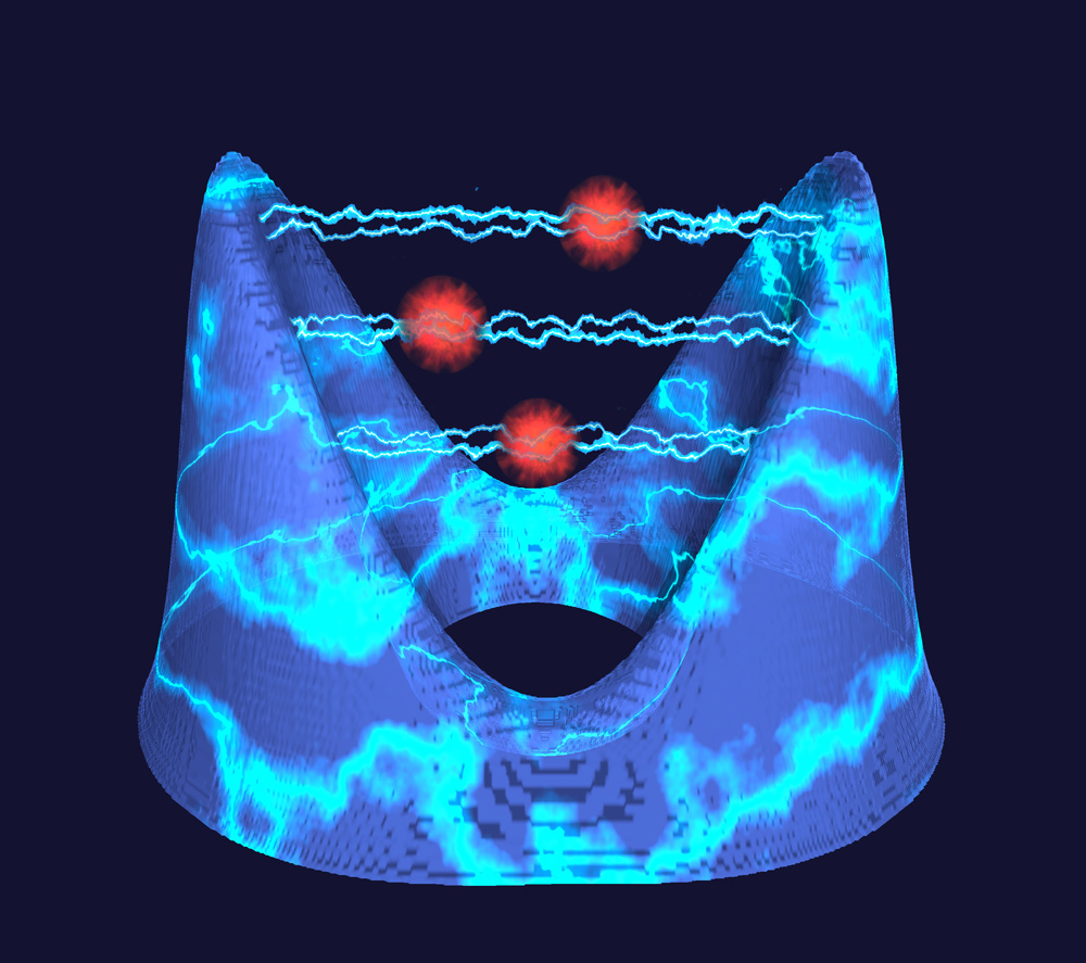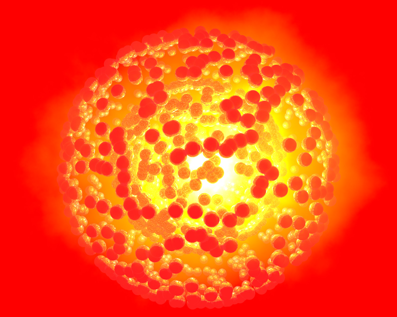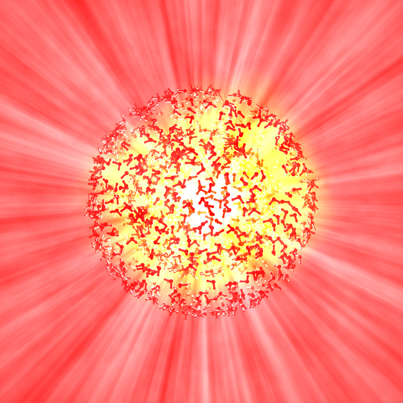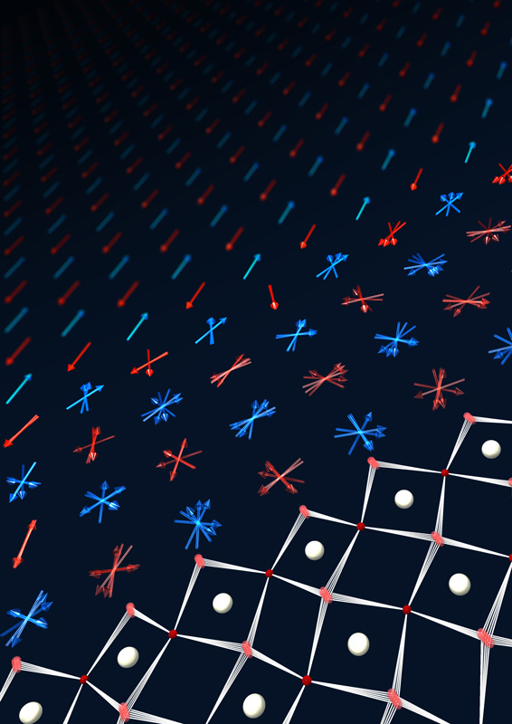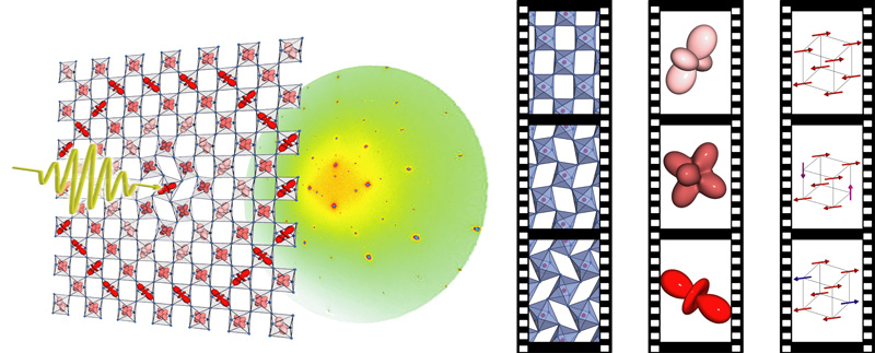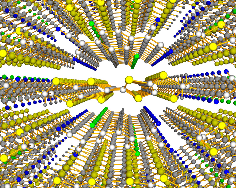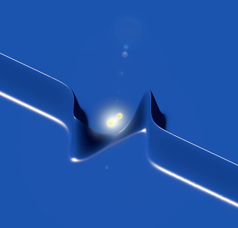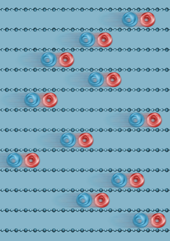 Die Ladungsdichte eines Elektrons (in blau) verändert sich durch die Wechselwirkung mit Photonen (in rot). Künstl. Umsetzung von theoretischen Ergebnissen.Künstlerische Darstellung der molekularen Bewegung des Chromophors Retinal, welche das Sehen ermöglicht.