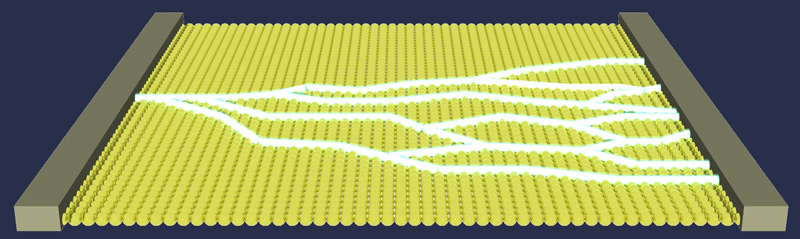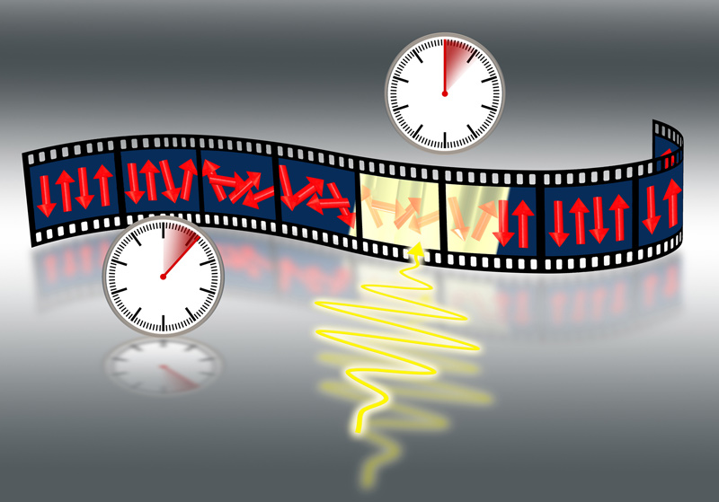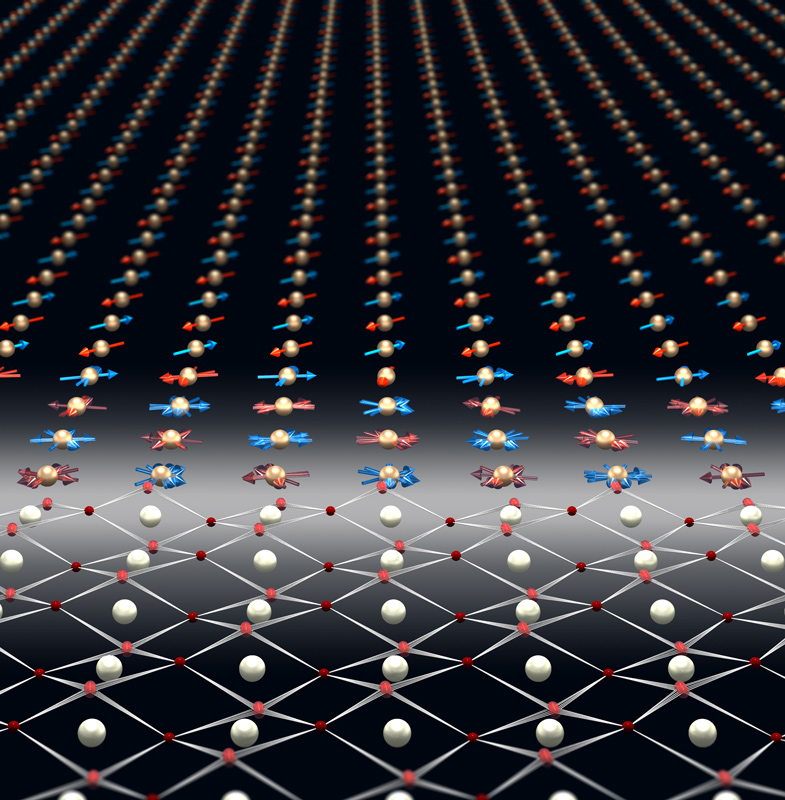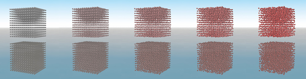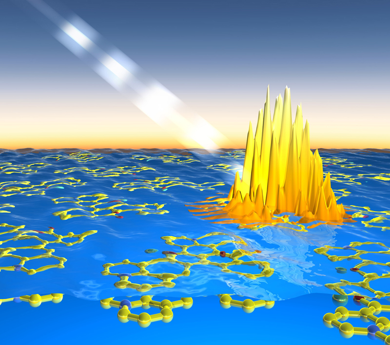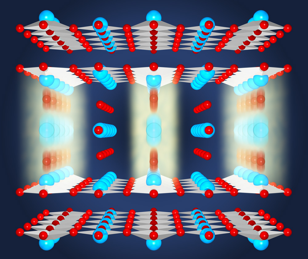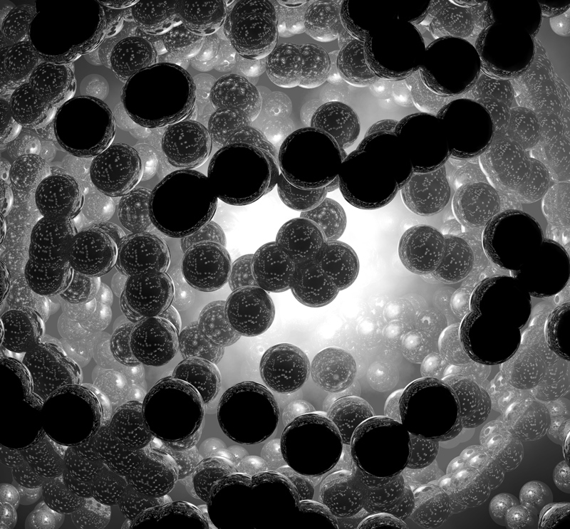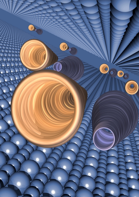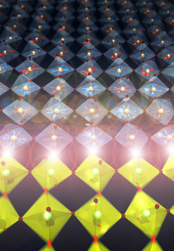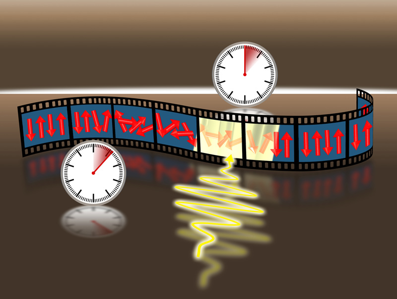 Die Ladungsdichte eines Elektrons (in blau) verändert sich durch die Wechselwirkung mit Photonen (in rot). Künstl. Umsetzung von theoretischen Ergebnissen.Künstlerische Darstellung der molekularen Bewegung des Chromophors Retinal, welche das Sehen ermöglicht.